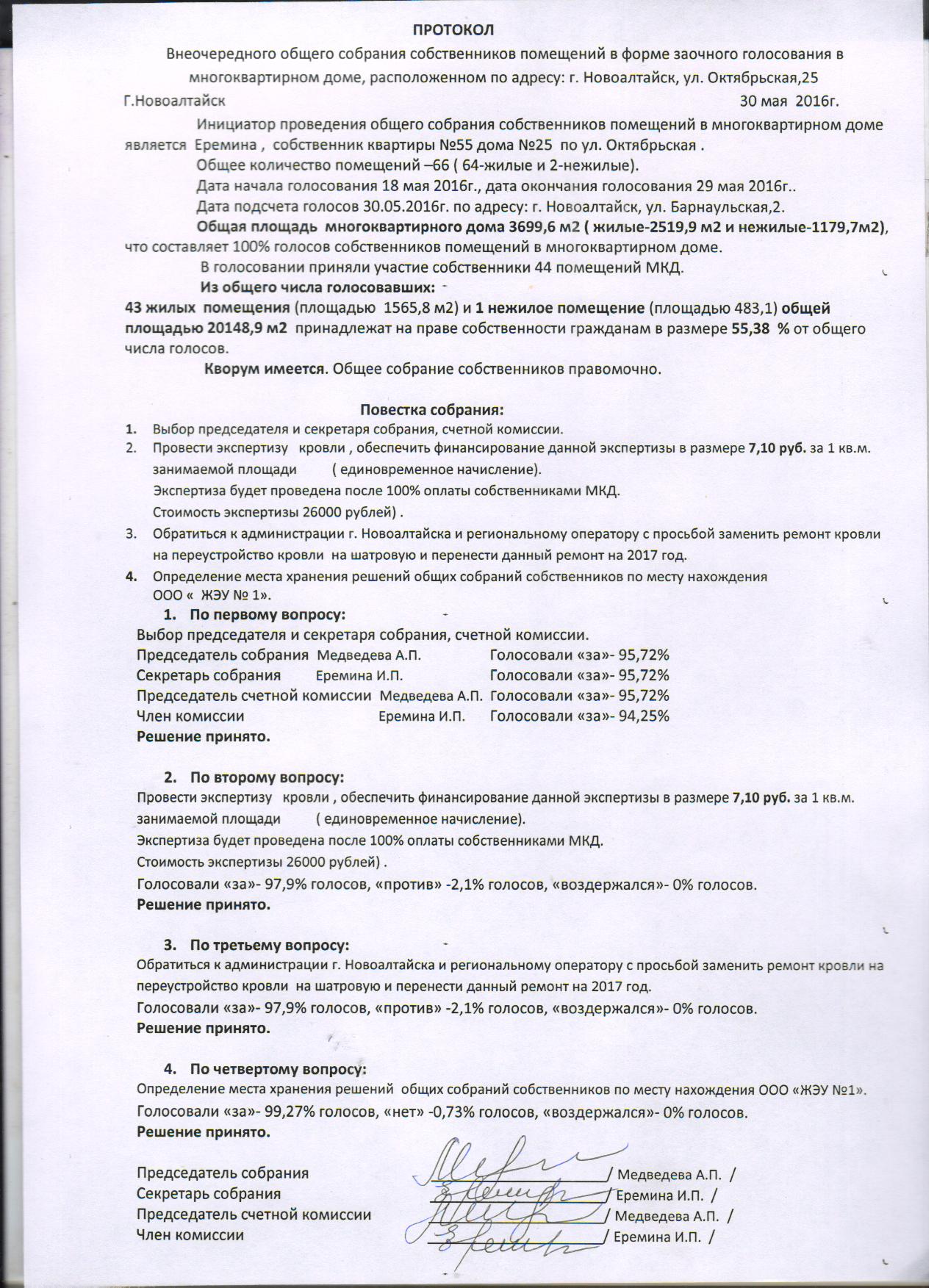 Ул. Октябрьская №25 Протокол Октябрьская, 25 от 30.05.2016
