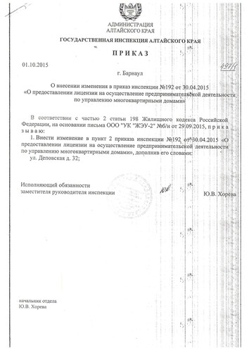 Прием по личным вопросам ведется каждый четверг с 14-00 до 16-30 директором ООО "ДОУК" Лагно А.А. по предварительной записи